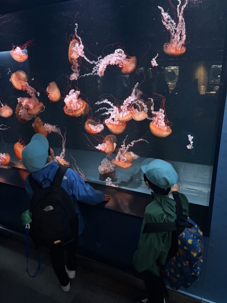 2026年3月6日 年長ふじ組 お別れ遠足🐬 3月5日(木)京都水族館へ年長ふじ組さんがお別れ遠足に行きました😃 幼稚園バス👉JR🚋👉徒歩👉水族館🐬到着🎵学級委員のお母さん方も一緒です。 たくさんのおさかなたち、ぺんぎんさん、クラゲさんを見て、最後はイルカさんを見ながら愛情弁当タイム😃😃😃 みんなで大冒険!あ~楽しかった😃😃😃最高の笑顔の日になりました。ありがとうございました😃😃😃