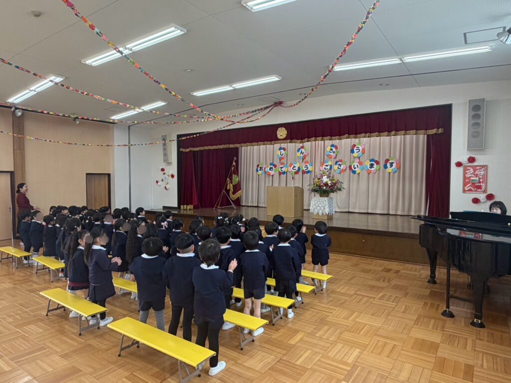 2026年3月19日 🌷もうすぐ はる♬ 笑顔の3学期終業式🌷 きのうのふじ組さんの卒園式の様子や今年1年間の子どもたちのがんばりについて、園長先生からお話がありました。また、精勤賞のお友達が表彰されました😃😃がんばりましたね! 最後はみんなでお歌を歌って🎵講堂で元気いっぱい体操をして1年を締めくくりました😃😃😃 もうすぐ はる♬ 年中さくら組さんが植えたチューリップも咲きました🌷