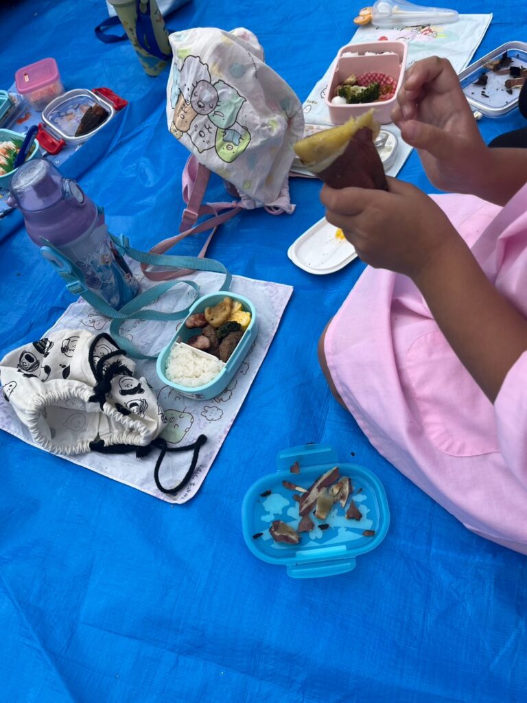 きょうは、お外でみんなでお弁当ピクニック🍱遠足みたいで楽しいね~🎵