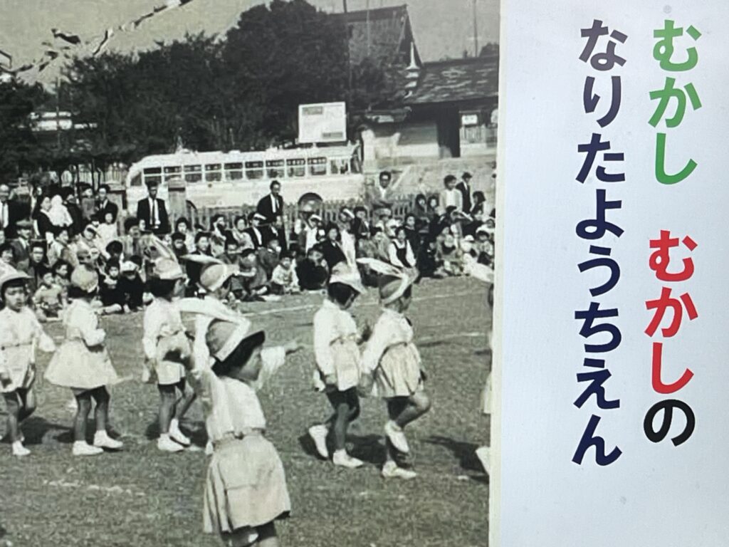 むかしむかしの成田幼稚園です。昔は成田山の山門前に園舎がありました。うんどう会でおゆうぎを見てもらっていますね♪