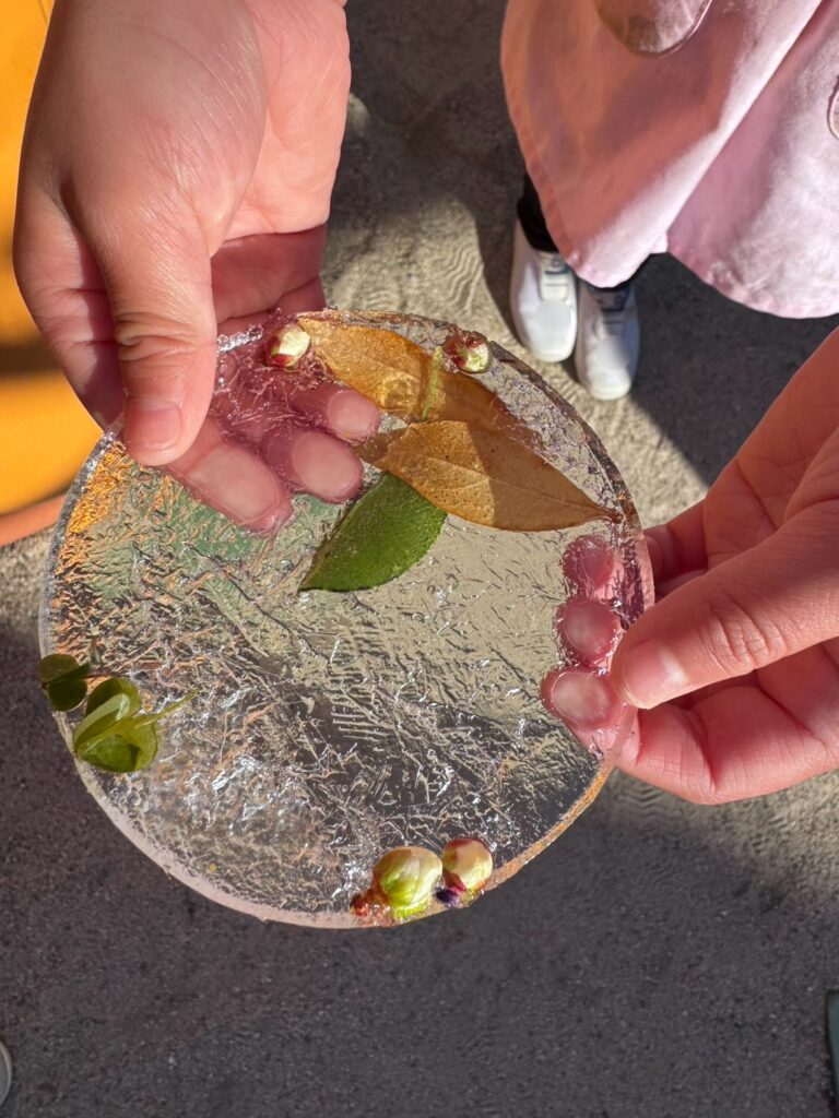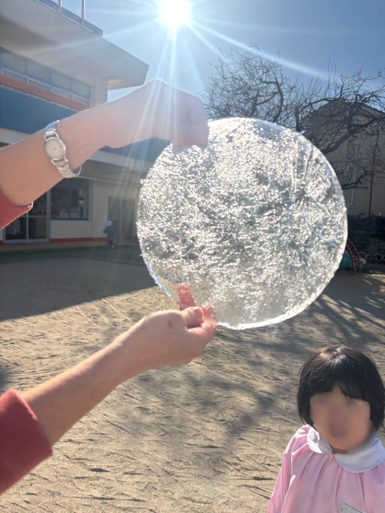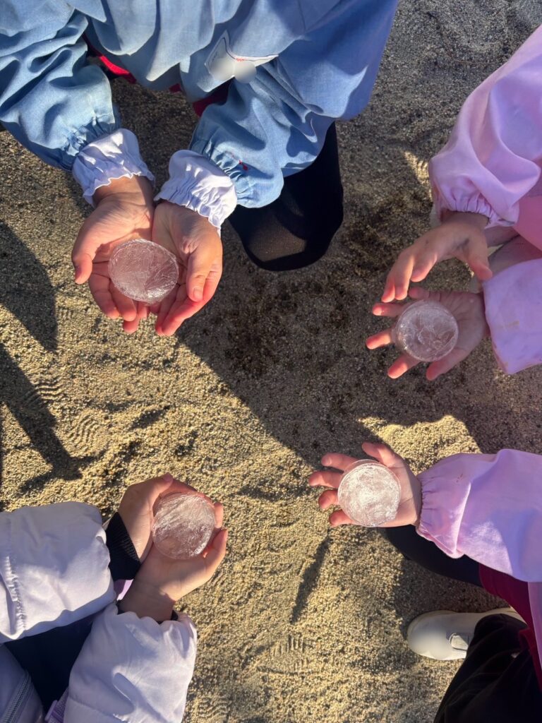 ①園では前日に水を張って氷づくり遊びです。