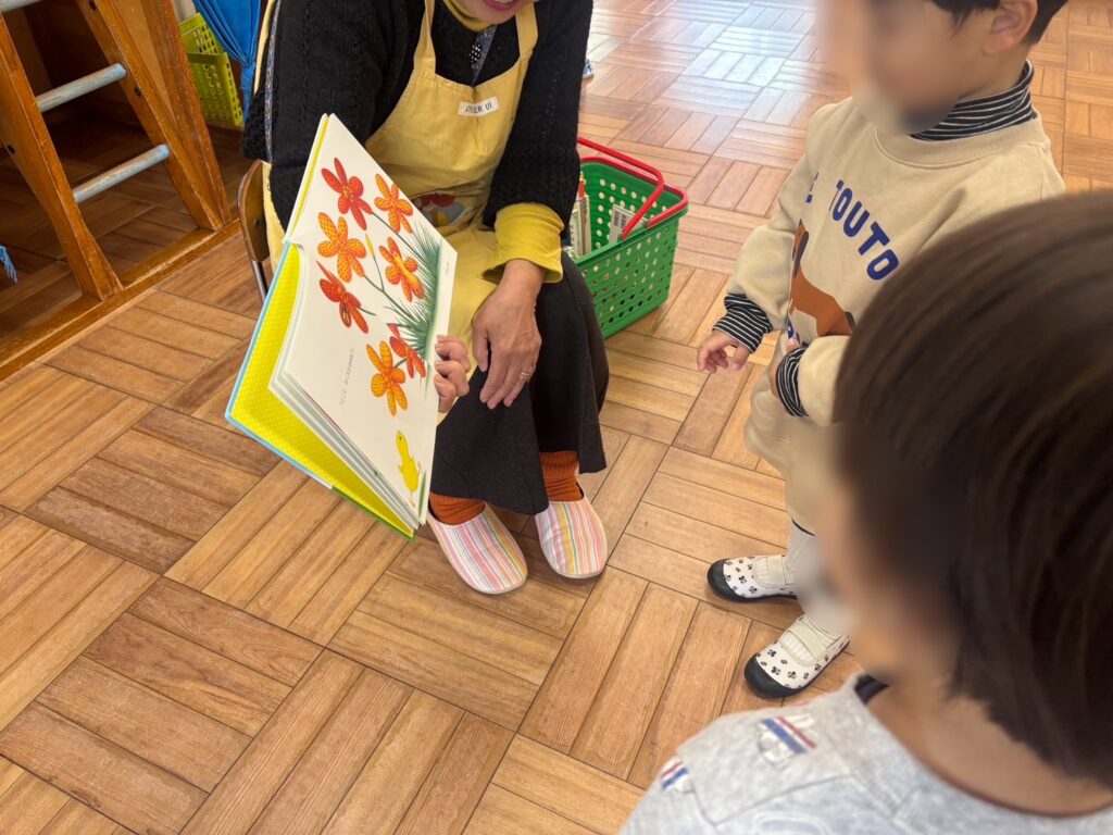 ④プレ保育室では絵本講師のひまわり先生の読み聞かせもありました😃😃😃たのしいね🎵